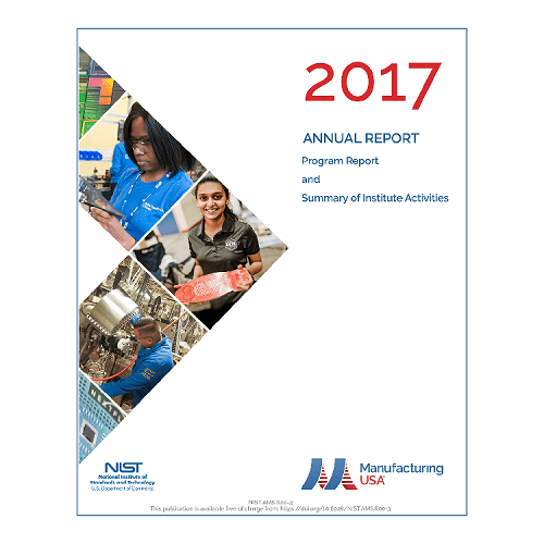 Manufacturing USA Annual Report, Fiscal Year 2017, Advanced Manufacturing National Program Office, National Institute of Standards and Technology, Department of Commerce (2018), https://doi.org/10.6028/NIST.AMS.600-3.
