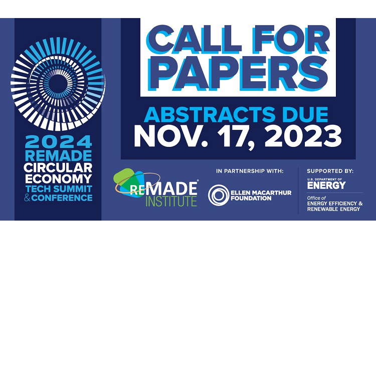 REMADE is pleased to announce its Call for Papers for the 2024 REMADE Circular Economy Tech Summit & Conference, which will take place April 10-11, 2024, in Washington, D.C. Submissions from academic researchers, industry innovators, and others, including international experts, are strongly encouraged. Papers will be peer-reviewed and published in the conference proceedings, which will be available in the fall of 2024.